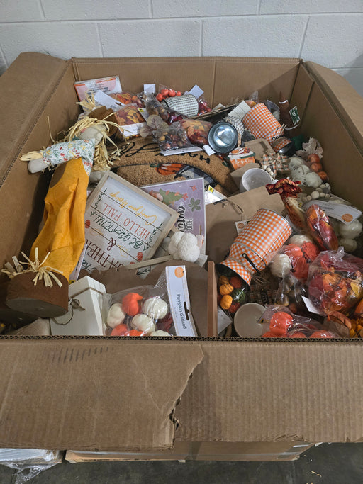 Pallets are 4 feet tall and filled with personal care items like shampoo, conditioner, and toothpaste.