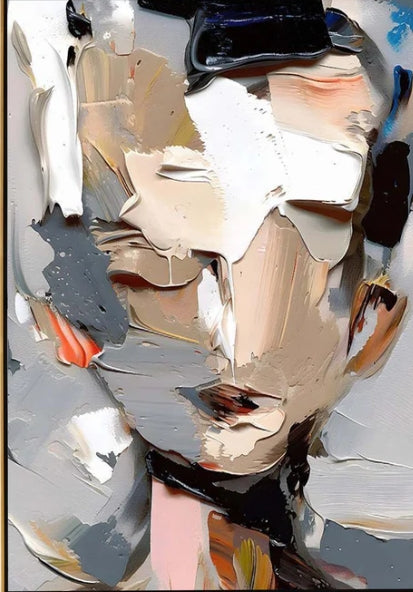 This captivating abstract oil painting redefines portraiture with its bold palette knife strokes and dynamic textures, creating a fragmented yet me...