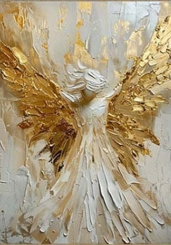 عرض التفاصيل الكاملةGold Leaf,Gold Wings,White Angel,Original large oil painting Angel oil painting Textured Painting, Acrylic Abstract Oil Painting, home decor (30*40)