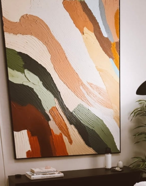 Neutral Brown Abstract Art for Modern Home Decor #AP 095 (black frame) (40*54)