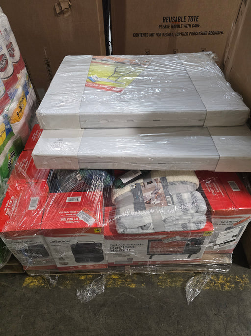 This is a single pallet, not a display. Schedule a meeting to see in person. Baby diapers and Christmas items.